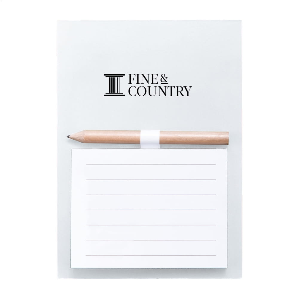 Coloured fridge magnet with 40 sheets notepad and mini wooden pencil.